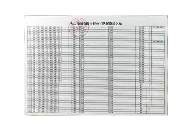 大慶東油15001隊(duì)(大慶油田)資質(zhì)證書(shū)
